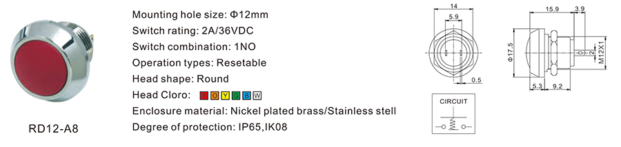 12MM金屬開關(guān)RD12-A8