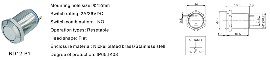 金屬開關(guān) | RD12-D5 | 36VDC | 2A | / | / | ≥100,000 CYCLES | 立即申請 | 下載 |