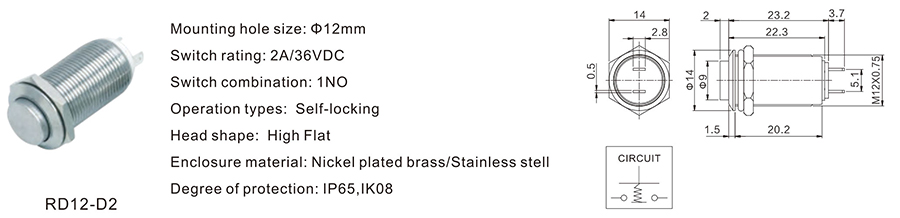 12MM金屬開關(guān)RD12-D2