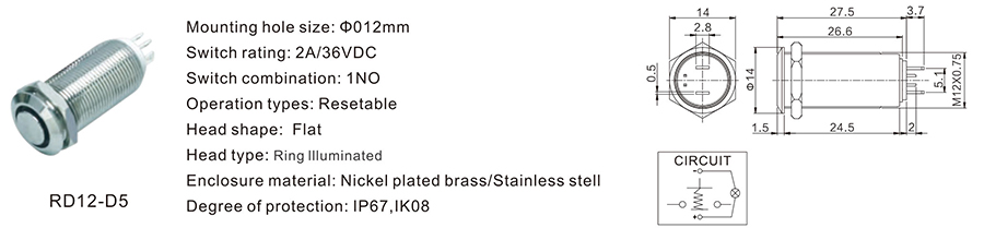 金屬開(kāi)關(guān) | RD12-D5 | 36VDC | 2A | / | / | ≥100,000 CYCLES | 立即申請(qǐng) | 下載 |