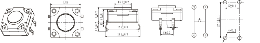 密封性12X12mm輕觸開關(guān)RTR-12 密封性輕觸開關(guān) RTR-12 12VDC 50mA 4±1 N 0.5±0.3mm ≥100,000 CYCLES 立即申請 下載