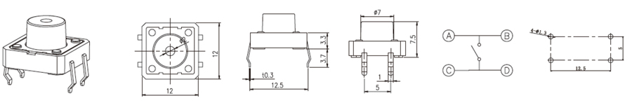 12x12mm輕觸開關(guān) | RTSP-2 | 12VDC | 50mA | 3±1 N | 0.3mm | ≥100,000 CYCLES | 立即申請 | 下載 |