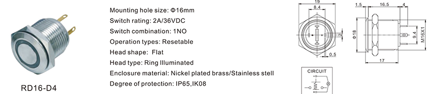 16MM金屬開關(guān)RD16-D4