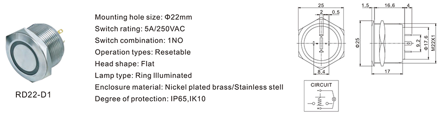 22MM金屬開關(guān)RD22-D1