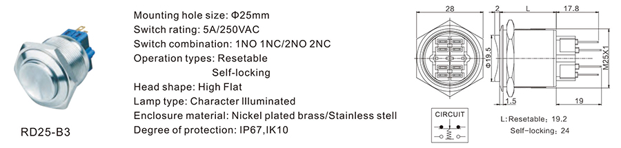 25MM金屬開關(guān)RD25-B3