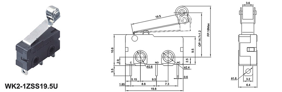 微動開關(guān) | WK2-3ZSS18.3U | 250VDC | 5(2)A | / | / | 1,000,000 cycles | 立即申請 | 下載 |
