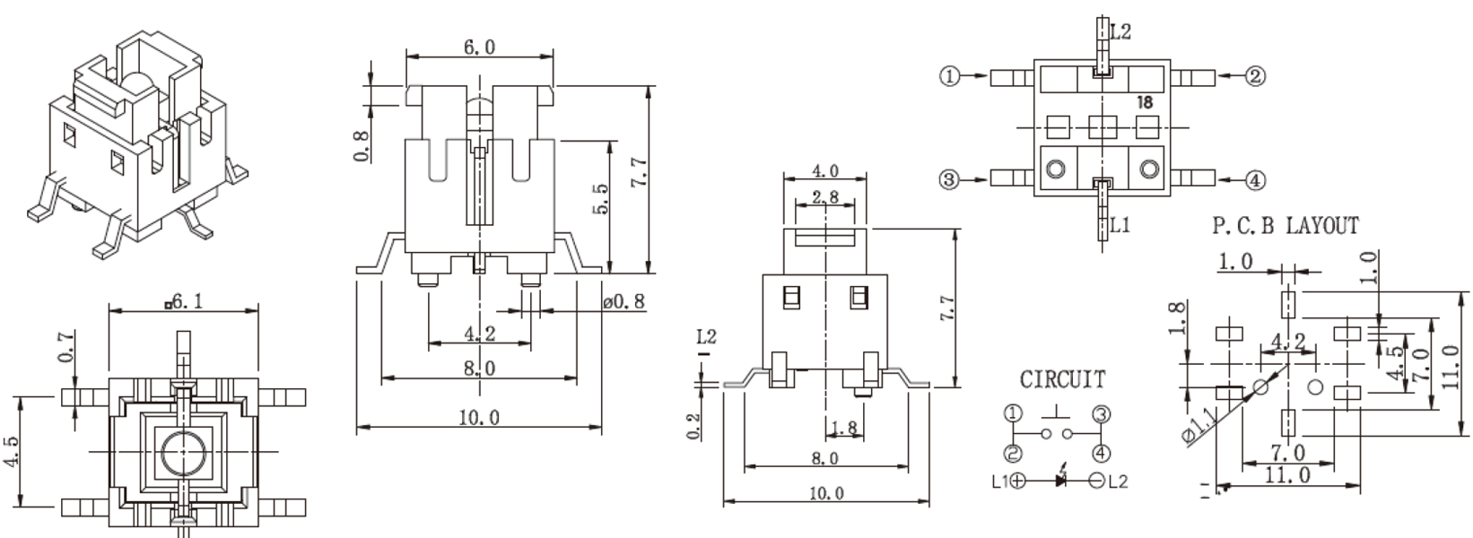 帶燈輕觸開關(guān) | R509K | 35VDC | 10mA | 2±1 N | 1.0mm | ≥100,000 CYCLES | 立即申請 | 下載 |