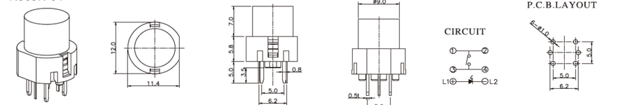 帶燈輕觸開關(guān)R509K 帶燈輕觸開關(guān) R509K 35VDC 10mA 2±1 N 1.0mm ≥100,000 CYCLES 立即申請(qǐng) 下載