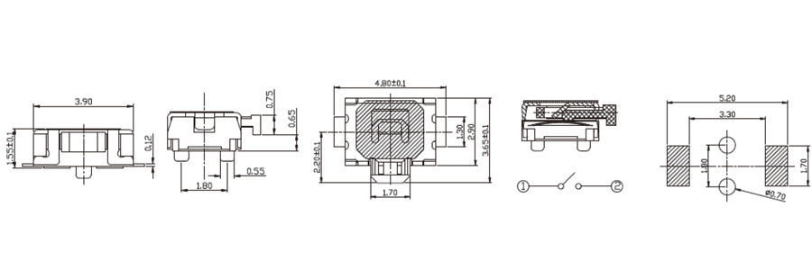 薄型輕觸開(kāi)關(guān) | RZTM | 12VDC | 50mA | 2±1 N | 0.25mm | ≥100,000 CYCLES | 立即申請(qǐng) | 下載 |
