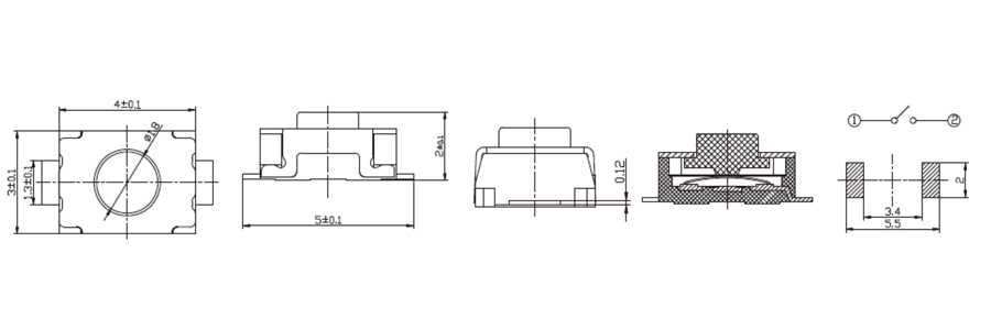 側(cè)按輕觸開(kāi)關(guān) | R10 | 12VDC | 50mA | 2±1 N | 0.13mm | ≥100,000 CYCLES | 立即申請(qǐng) | 下載 |